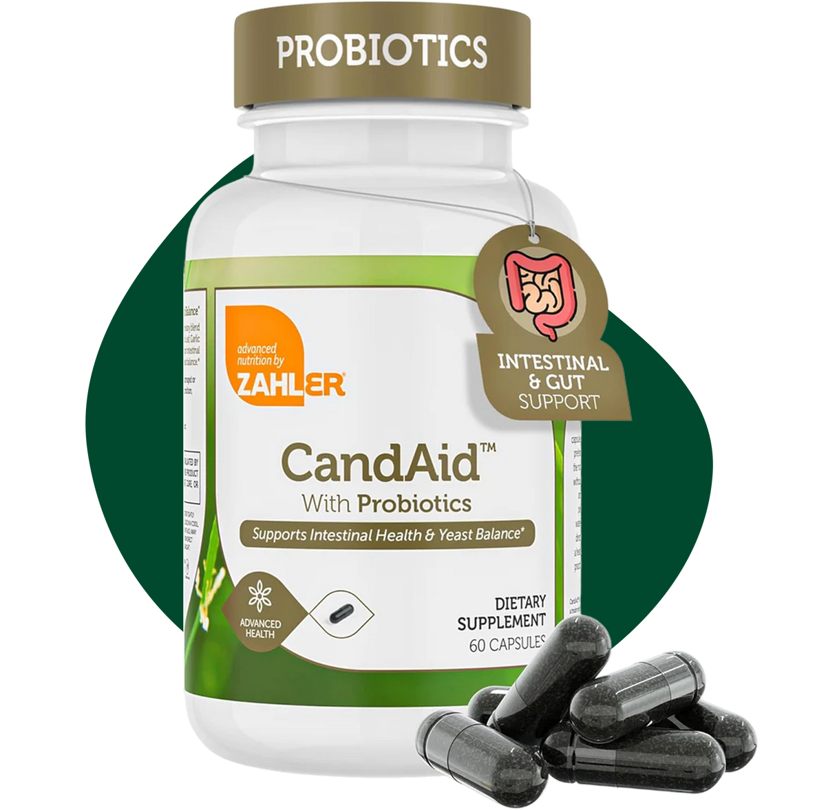 Zahler CandAid is formulated with a unique two-stage liquid and solid delivery system to support intestinal health and yeast balance. The initial release of Black Seed Oil along with Oregano, Garlic and Thyme essential oils are complemented by a delayed targeted release of beneficial probiotic organisms to support microbial balance.